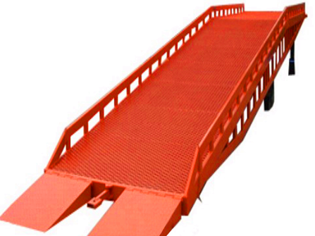 防爆登車橋前面配置可調節長度的索鏈用于鉤住車輛,使登車橋與卡車發生位移時,登車橋與卡車不會脫離,保障作業安全。移動式登車橋坡面采用特制的高強度齒形鋼格板,具有卓越的防滑性能,使叉車有更好的爬坡能力和操控性。即使在雨雪天,仍能保障正常作業。隨機配置的剎車墊,能有效防止叉車在登車橋上行走作業時,登車橋發生溜車及移動以保障作業安全。