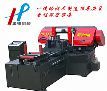 角度鋸床主要是用于鋸切各類金屬和非金屬材料,可滿足用戶對Φ300mm尺寸以下的各種材料鋸斷加工,是機械工業不可缺少的下料設備。本鋸床適合加工廠、刀具廠、模具廠鋸碳鋼、不銹鋼、銅鋁材及其他非金屬材料。角度式帶鋸床,雙立柱結構,垂直升降,穩定性高;可調角度0°—45°左右,操作簡單;切削速度液壓控制,無級調速;工件夾緊為液壓夾緊,操作方便;可定制三向液壓夾緊裝置